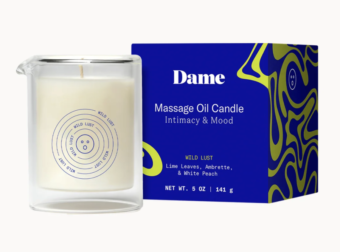 Massage candle (with delicious scents, so this gift covers touch and smell) sold by Dame, a respected woman-founded sex toy company. This candle provides an ambiance that turns into tactile, scented, warm pleasure when the candle melts into massage oil.